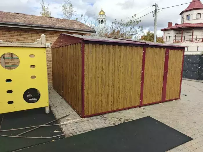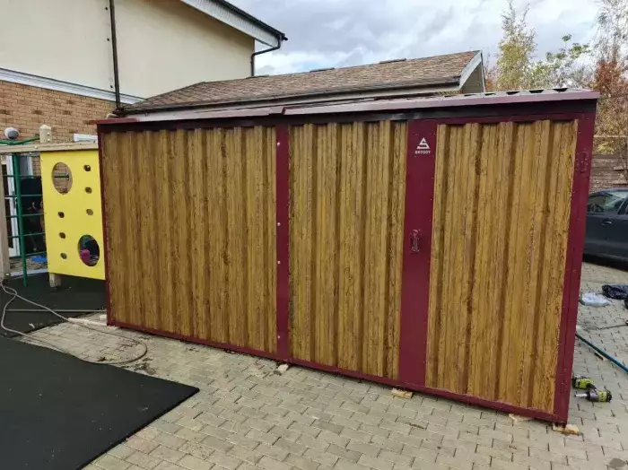 Проект: два 4-метровых хозблока для хранения хозяйственных вещей в графитовом цвете.