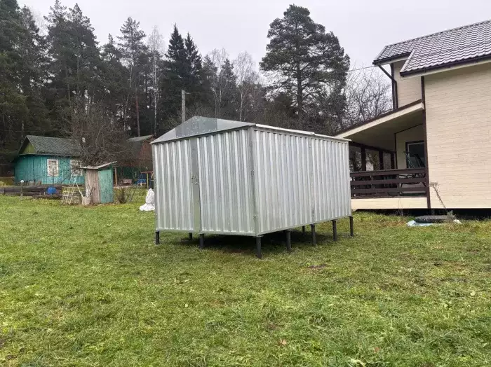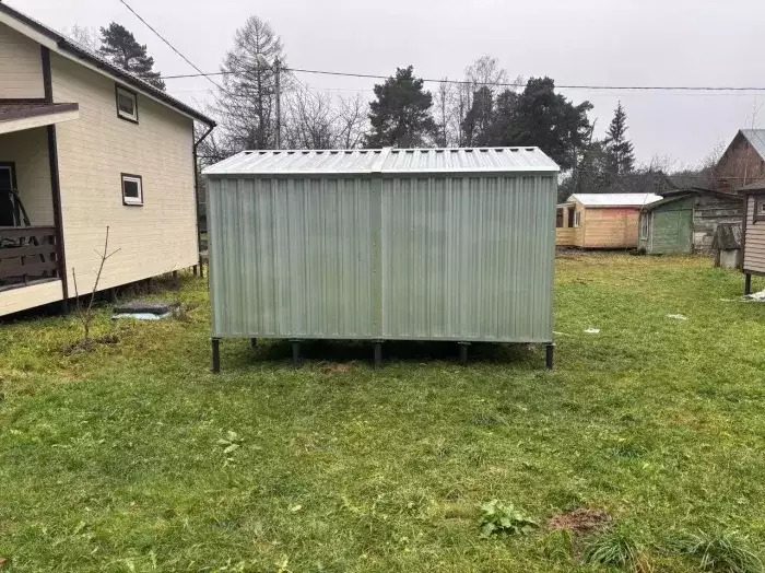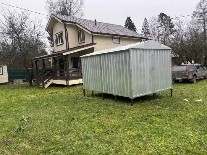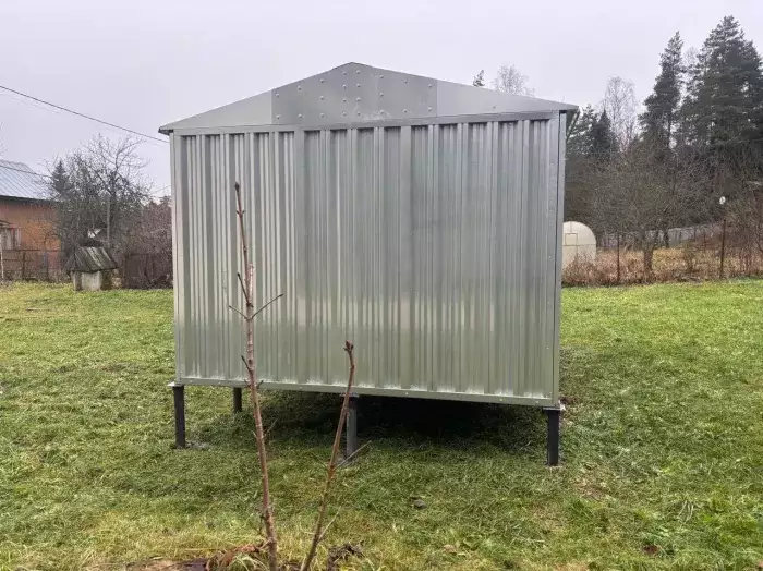 Проект: два хозблока 2 х 2 х 2,3 м и 0,7 х 2 х 2,3 м для хранения садовой техники и инвентаря в двойной расцветке.