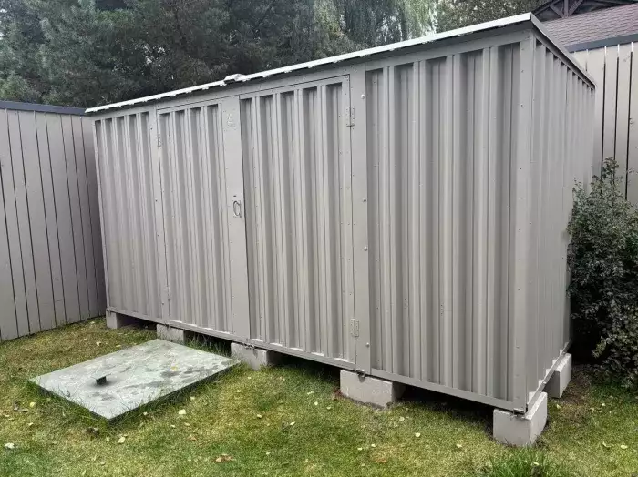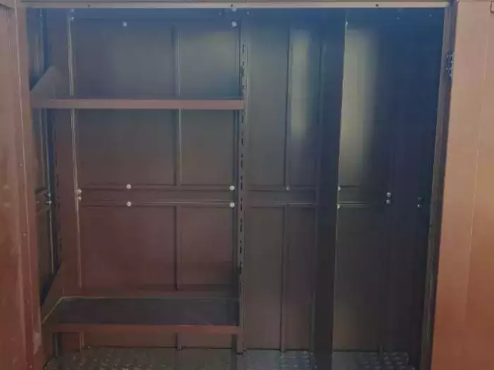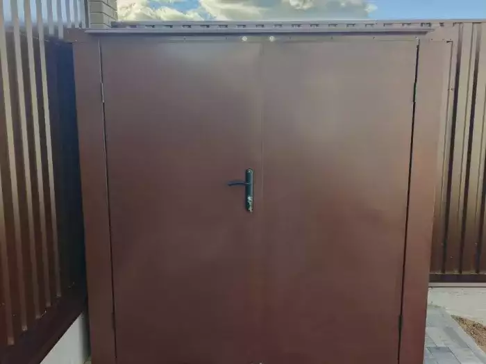 Проект: два уличных шкафа 0,7 х 1,8 х 1,8 м с рольставнями в шоколадно-коричневом цвете.
