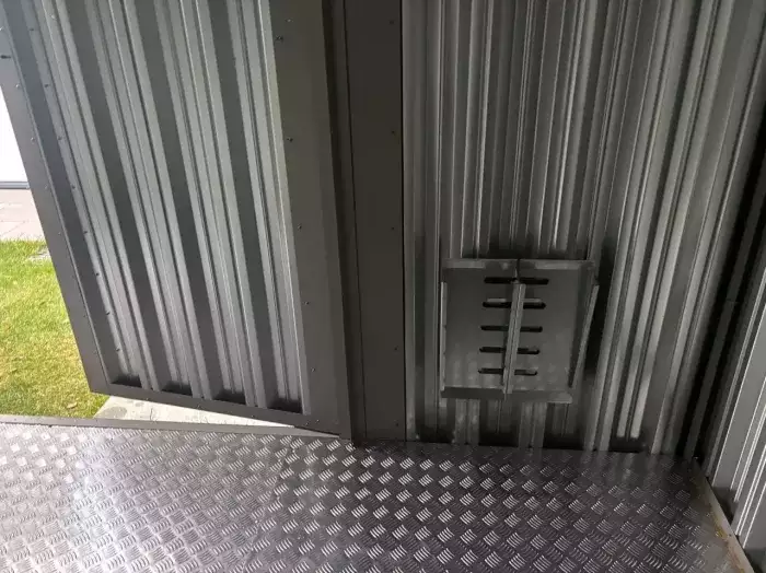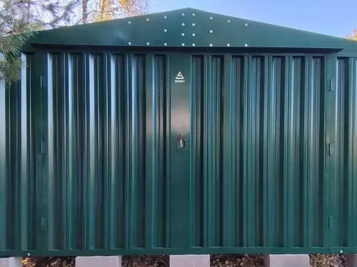 Нами были изготовлены две конструкции уличного шкафа размерами 0,7 х 1,8 х 1,8 м в стильном шоколадно-коричневом цвете RAL 8017.
