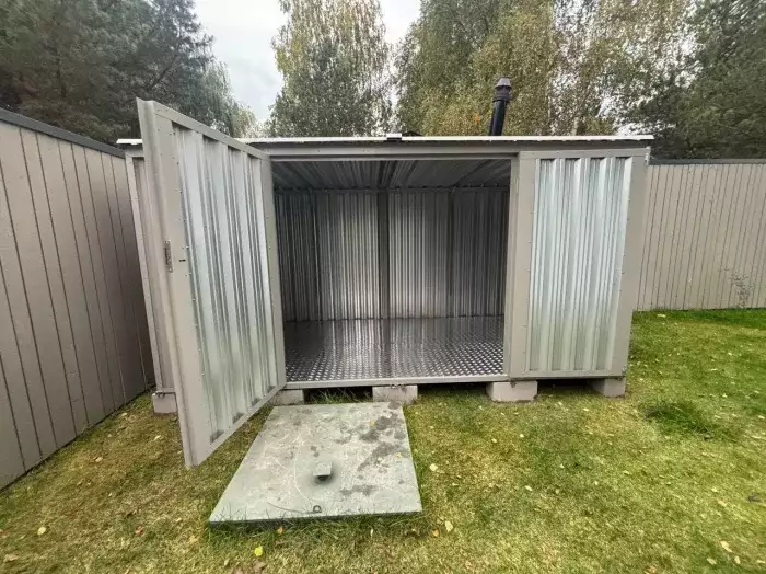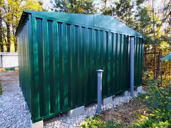 У заказчика на участке из-под бани выступали балки, он соорудил постамент, и на него как раз и были установлены обе конструкции.