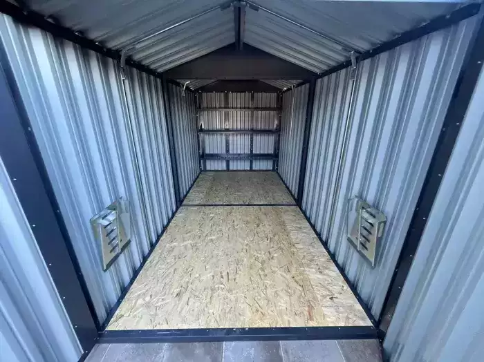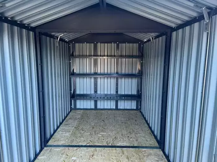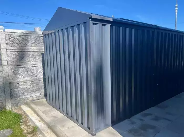 Проект: 6-метровый хозблок для хранения хозяйственных принадлежностей и инструментов в графитовом цвете.