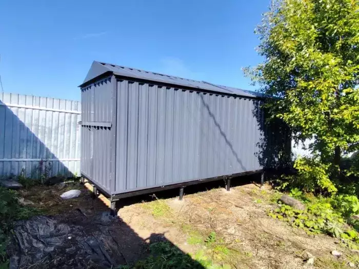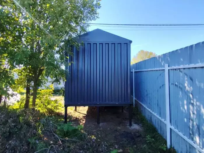 Нами была изготовлена конструкция размером 2,1 х 2,3 х 0,9 м в блестящем цинковом цвете.