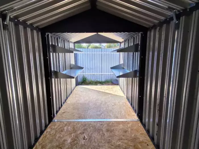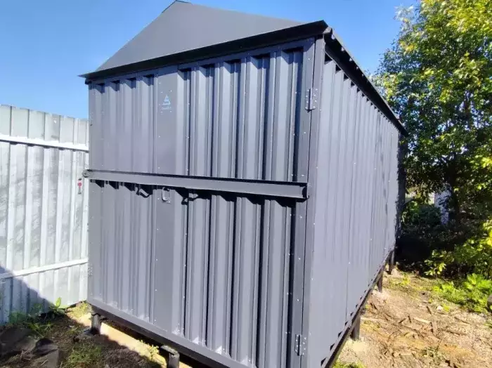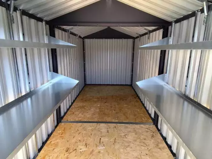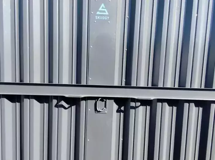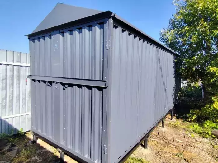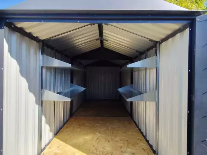 Проект: роллетный шкаф 2,1 х 2,3 х 0,9 м для хранения колес и личных вещей в цинковом цвете.